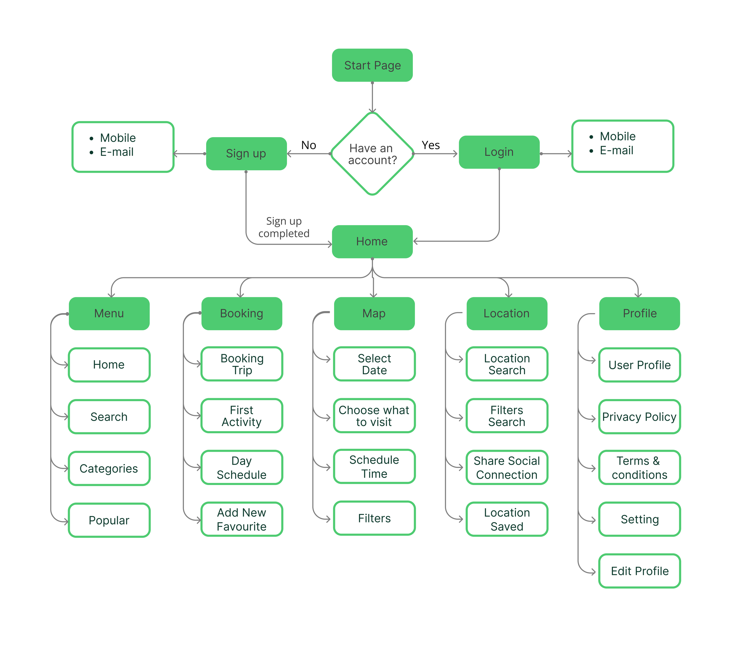 I mapped how users move through UzGo from sign-in to exploring, planning, and booking. The goal was to keep everything simple and connected so users can navigate the app without confusion.