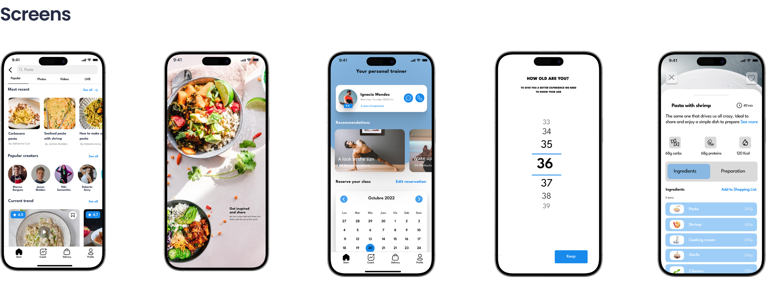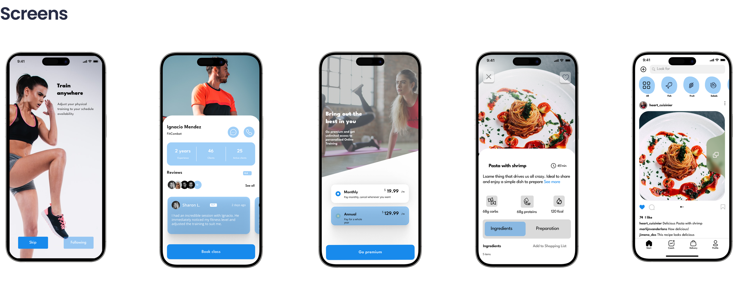 I designed a mobile experience that combines training, meal inspiration, and social interaction into one platform. The interface focuses on clarity, visual engagement, and ease of use to support everyday habits.